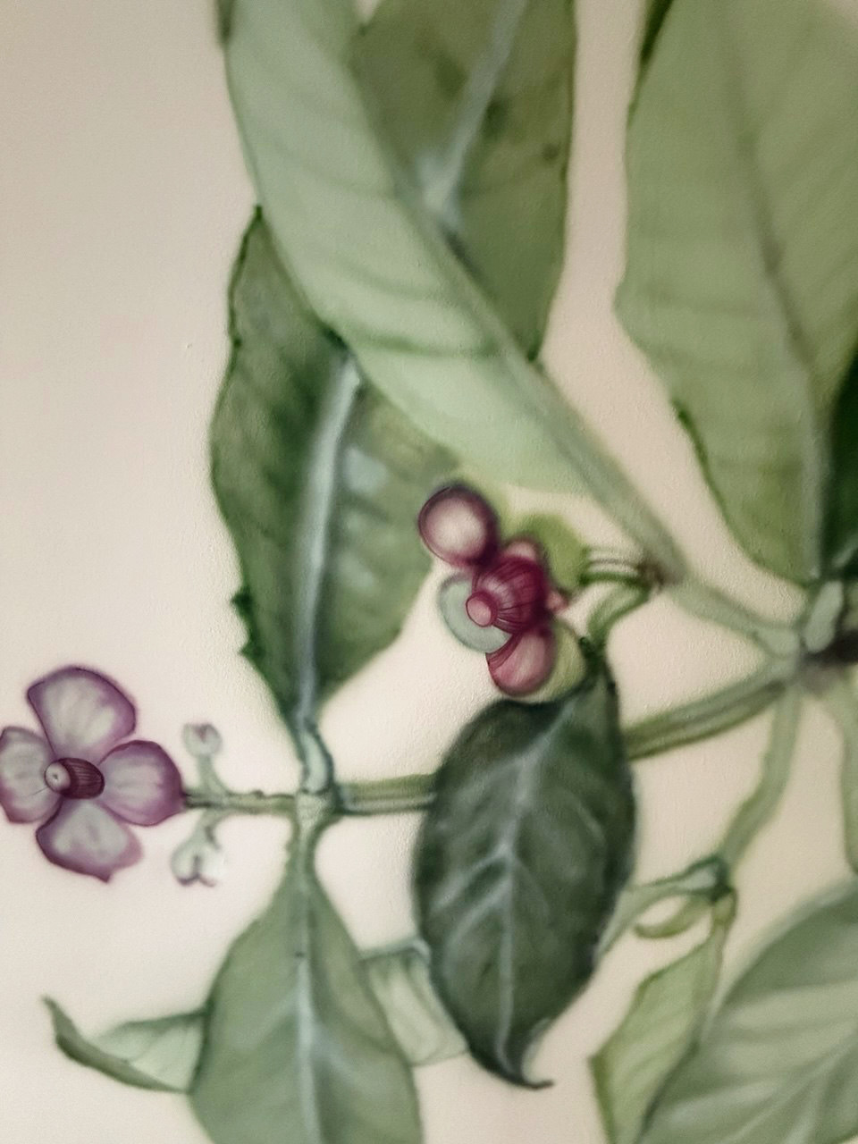 Mangosteen branch was created using airbrush techniques, reimagining the mangosteen leaves in a soft, atmospheric style. Built through delicate, multilayered shading, the artwork blends depth, texture, and light into a refined, organic flow.