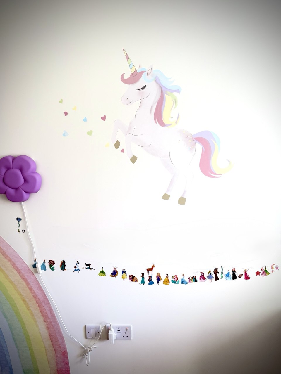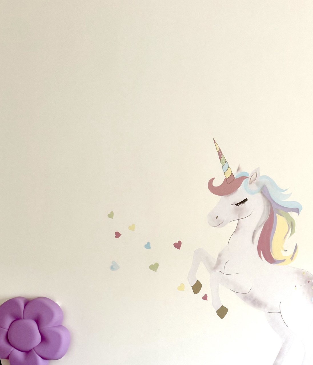 A soft watercolorunicorn, painted in delicate blush and rose tones, created as a one-of-a-kind mural inspired by the dreams of little Princess Sonya. Painted directly onto the wall of her children's room, the artwork transforms the space into a fairytale world filled with gentle magic, warmth, and wonder. Through this piece, I open the door to a tender fantasy where dreams glow softly, imagination blooms, and everything feels timeless and pure.